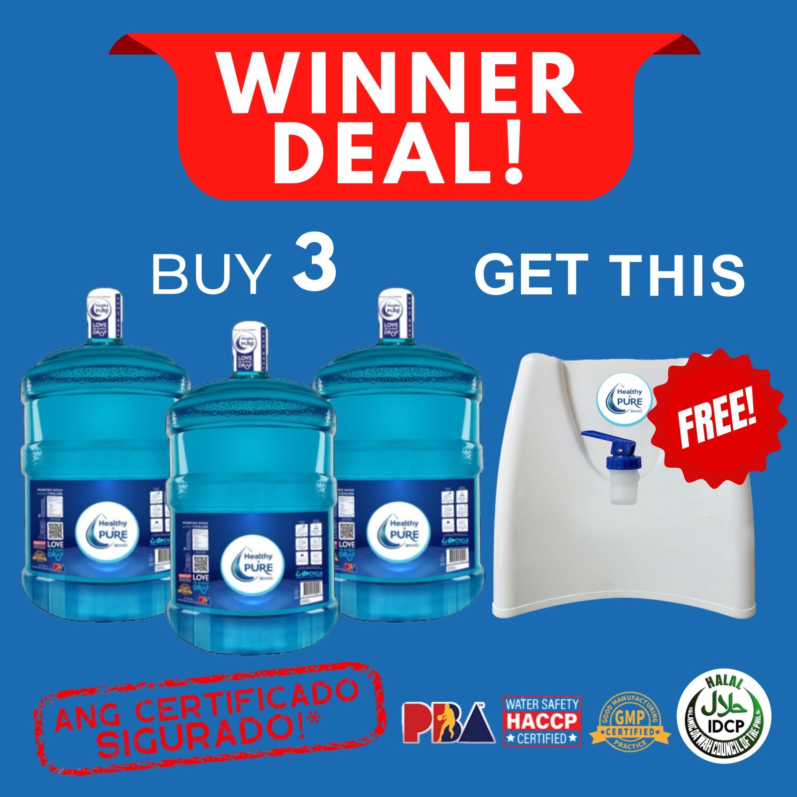 Healthy & Pure Brand 5-Gallons Purified Water is the best essential item for your home, keeping you and your family hydrated every day. This container uses a Non-spill One-time-use Cap to ensure no spillage and no reusing of caps after consumption.